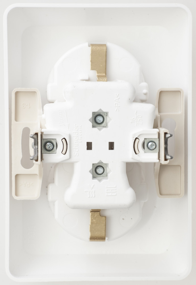 Розетка Systeme Electric (ранее Schneider Electric) ЭТЮД (белый, скрытой установки) двухместная с заземлением, без шторок предназначена для применения в сетях до 250В, на ток до 16А. Двухместная розетка позволяет подключить два устройства в одном месте. Габаритные размеры основания 113*76,5 мм. Заземление обеспечивает безопасность при косвенном прикосновении. Она проста в установке и удобна в применении. Сделано в России.
