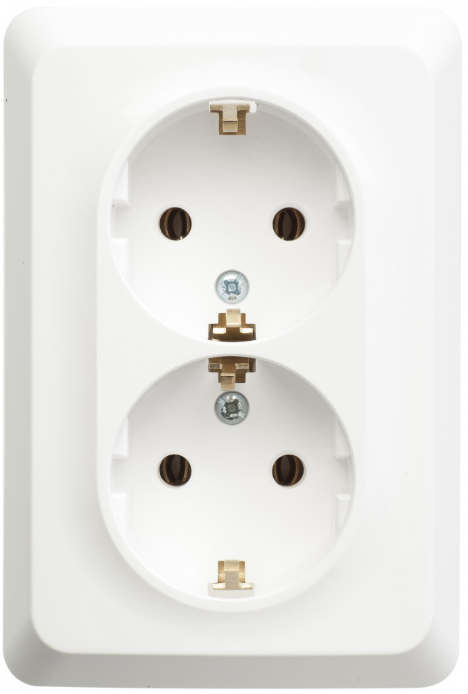 Полное описание товара ЭТЮД Розетка двойная скрытой установки с заземлением без шторок 16А 250B, белый (Systeme Electric) PC16-107B