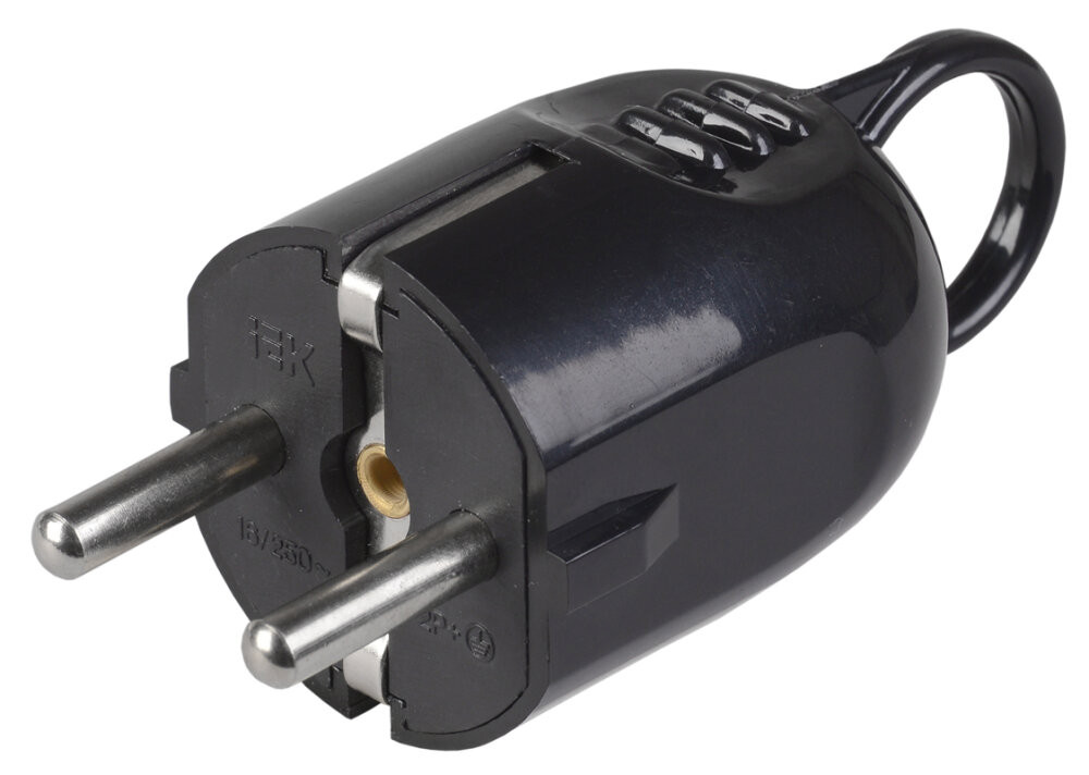 Полное описание товара Евровилка угловая с ушком черная 16 А (IEK) EVP12-16-01-K02