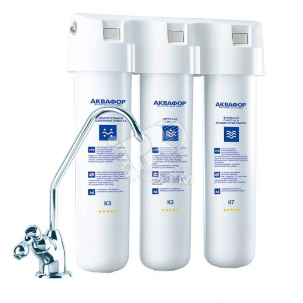Удаляет хлор, тяжелые металлы, пестициды, нефтепродукты и другие распространенные загрязнители. Подает чистую питьевую воду на отдельный кран. Картриджи меняются одновременно раз в год.