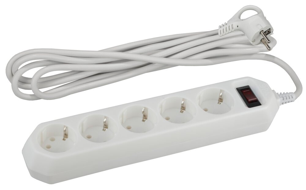 Фильтр сетевой 5х3м 10А с/з с выключателем белый (ЭРА) Б0019033