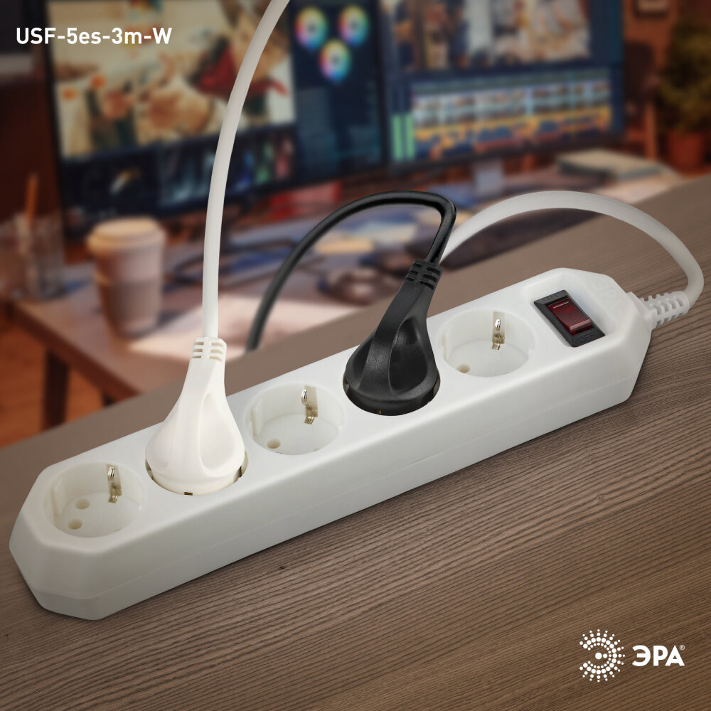 Сетевой фильтр ЭРА USF-5es-3m-W с базовой защитой выступает необходимым аксессуаром в квартире. Он позволяет безопасно подключать технику, надежно защищая ее перегрузки сети, короткого замыкания, фильтруя импульсные помехи. Его мощность составляет 2200 Вт, что обеспечивает надежную бесперебойную работу всех подключенных устройств. На корпусе фильтра расположены 5 розеток и выключатель с подсветкой, и это создает дополнительное удобство при эксплуатации. В ежедневном быту часто возникает необходимость использовать удлинитель, и сетевой фильтр ЭРА прекрасно справляется с этой задачей. Длина его провода составляет 3м. Его легко использовать в переделах комнаты или эксплуатировать, уходя в соседнюю. Сетевые фильтры разрабатываются собственным техническим бюро, проходят проверку на всех этапах производства, что обеспечивает высокое качество продукта.