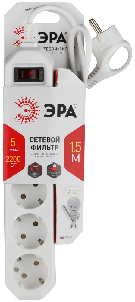 Сетевой фильтр ЭРА USF-5es-1.5m-W обладает несомненными достоинствами, позволяющими ему стать необходимым атрибутом современного дома. Прочный корпус универсального цвета имеет 5 розеток, каждая из которых имеет заземление. Длина его провода составляет 1.5 м, что особенно удобно в пределах одной комнаты. Функционируя как удлинитель, сетевой фильтр ЭРА исключит большое количество лишних проводов. Он защищает от перегрузки сети, короткого замыкания, фильтрует импульсные помехи. При этом мощность фильтра составляет 2200 Вт, что обеспечивает безопасную и стабильную работу техники. Современная квартира уже не представляется без большого количества приборов, и именно сетевой фильтр защитит их в любой ситуации. Сетевые фильтры разрабатываются собственным техническим бюро, проходят проверку на всех этапах производства, что обеспечивает высокое качество продукта.