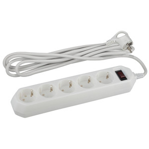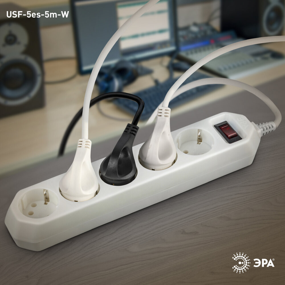 Фильтр сетевой USF-5es-5m-W с базовой защитой с заземлением с выключателем 5 розеток 5м 10А белый (ЭРА) Б0019738
