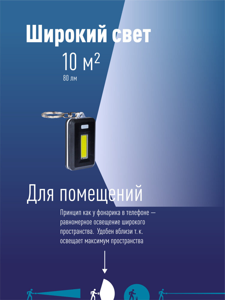 Полное описание товара Фонарь брелок 1Вт COBLED/3xAAA/корпус ABS-пластик/кольцо для ключей, (Космос) KOC203B