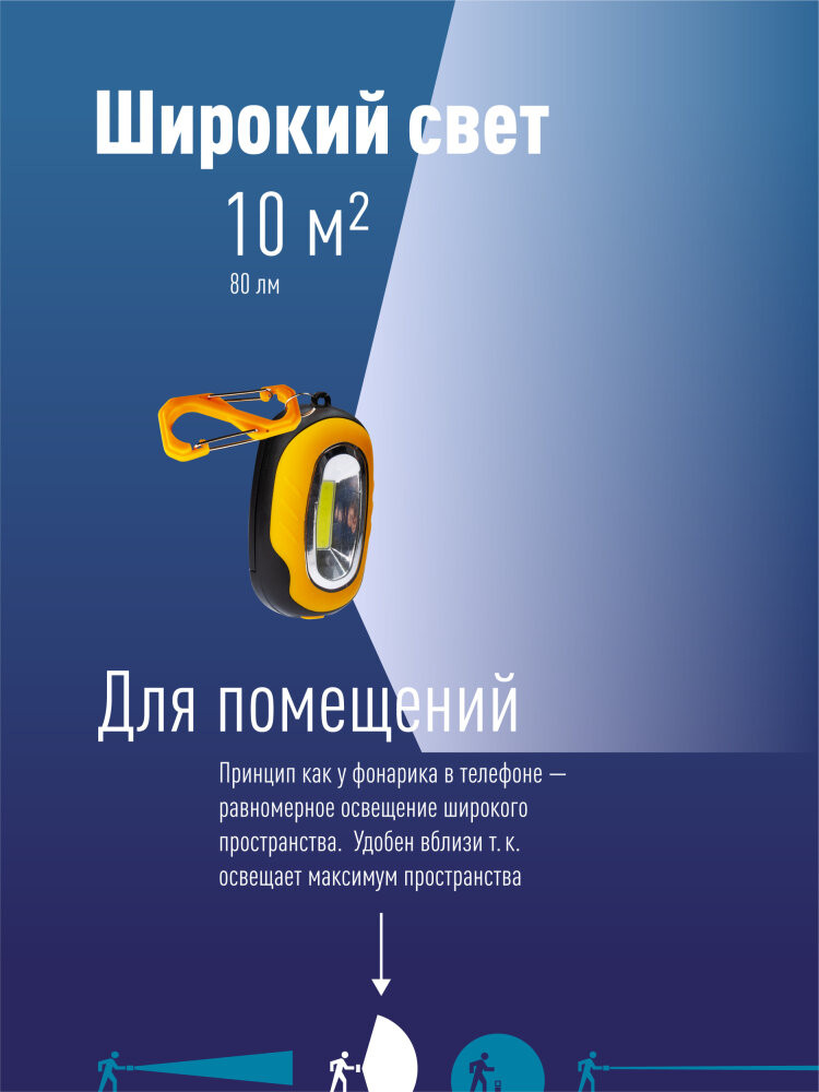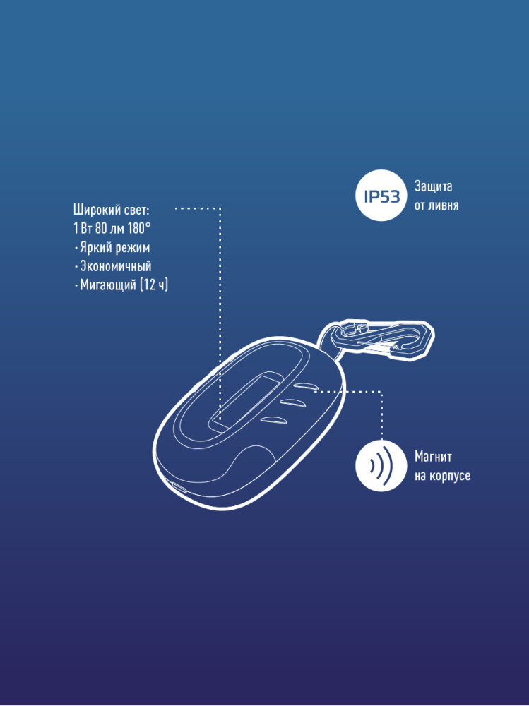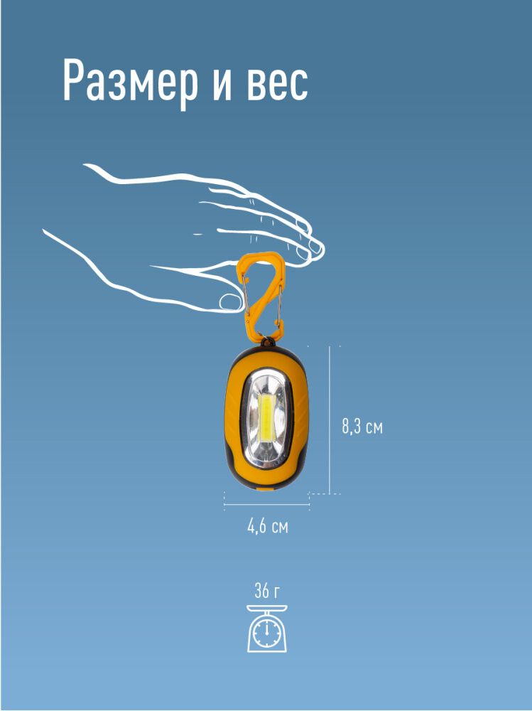 Полное описание товара Фонарь брелок походный кемпинг 1Вт COBLED/3xAAA/ABS-пласт/магнит на корпусе/карабин, КОСМОС (Космос) KOC202B