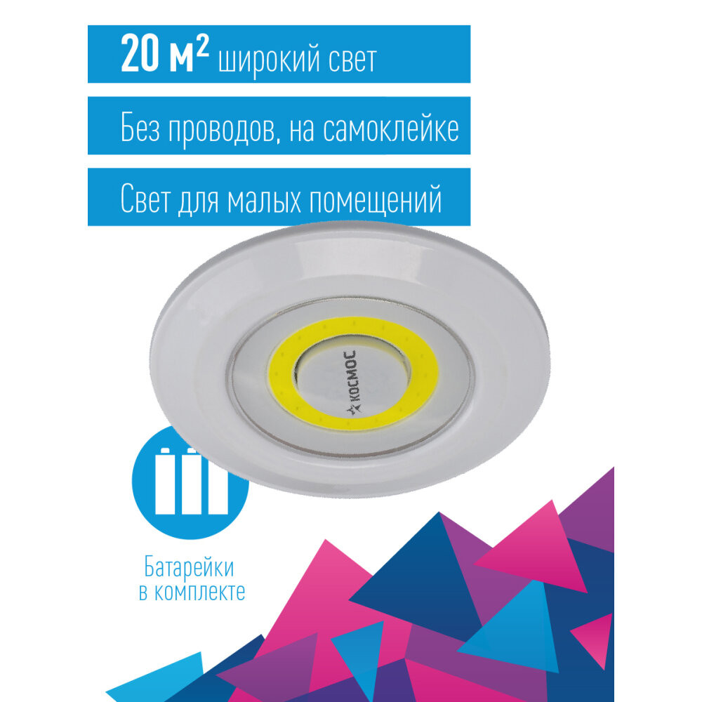 Фонарь подсветка 3ВтCOBLED/3xAAA (R03) в комплекте/корпус ABS-пластик/самоклеящийся (Космос) KOC308B
