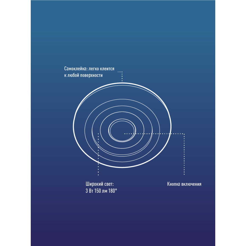 Полное описание товара Фонарь подсветка 3ВтCOBLED/3xAAA (R03) в комплекте/корпус ABS-пластик/самоклеящийся (Космос) KOC308B
