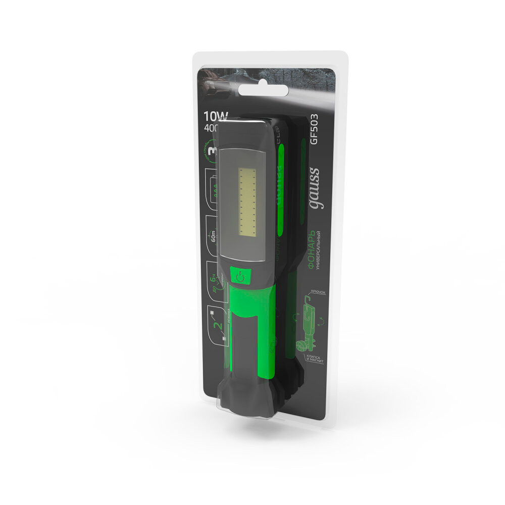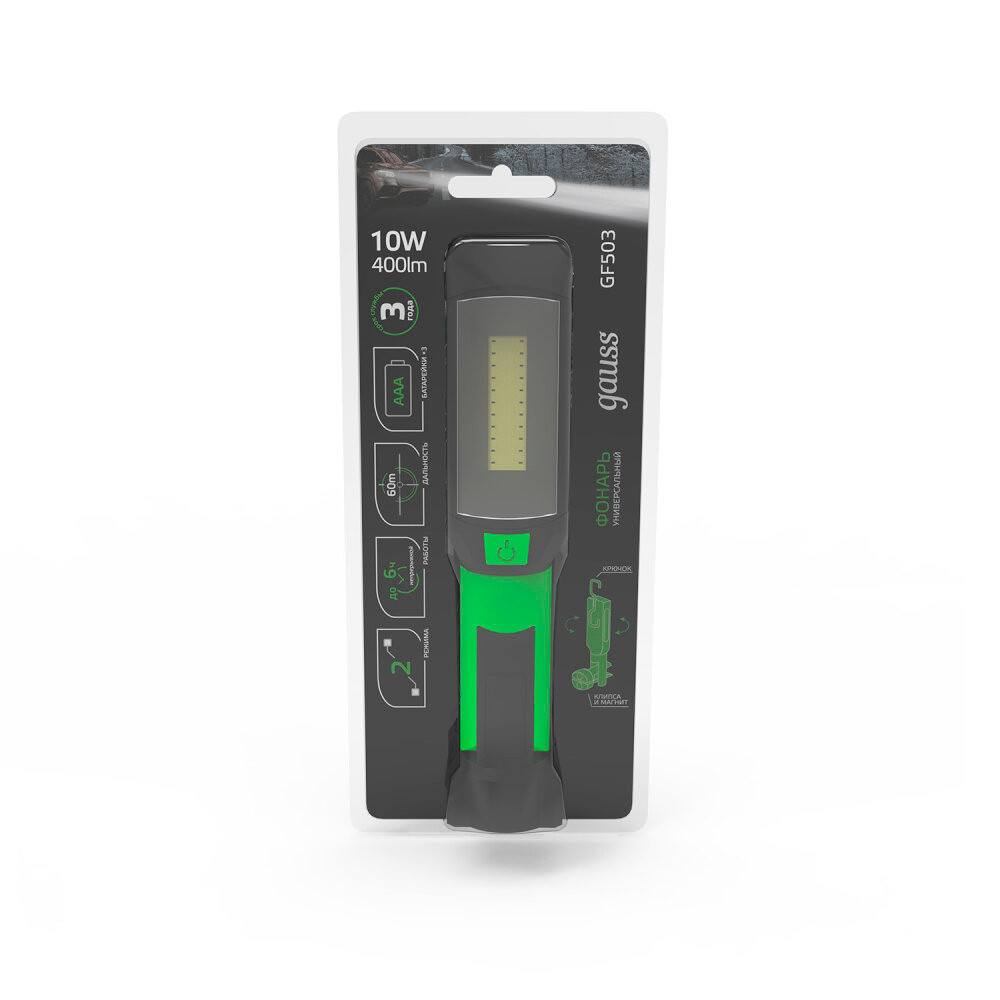 Полное описание товара Фонарь светодиодный рабочий 10 Вт 400 лм Черный IP40 на батарейках 3xААА GFL Gauss (GAUSS) GF503