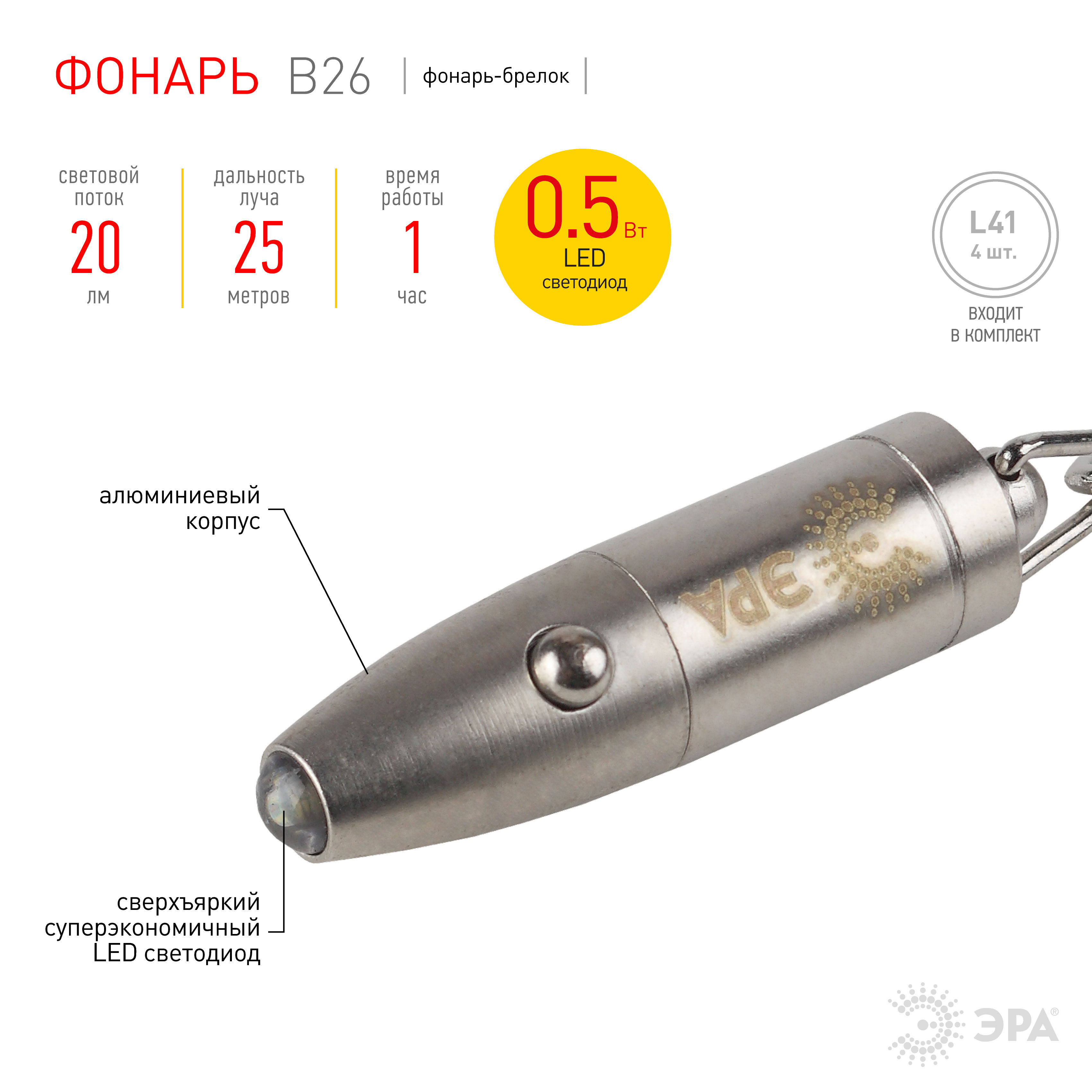 Фонарь В26 LED брелок алюм, бат в компл,бл (ЭРА) C0030362
