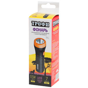 Полное описание товара Фонарик карманный, ударопрочный, индикатор заряда, с вилкой для зарядки TA1 Трофи (ЭРА) Б0005797