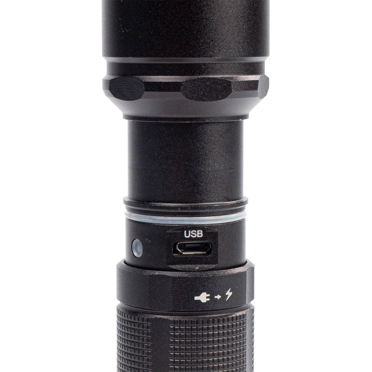 - Краткая характеристика: • Источник света: светодиод CREE XML T6 LED. • Регулировка фокусного расстояния «Speed Focus» • Корпус из легкого и прочного алюминиевого сплава. • Степень защиты: IPX6. • Прорезиненная кнопка включения. • 5 режимов работы: полная яркость, 50% яркости, 25% яркости, мигание, SOS. • Выбор режима полунажатием кнопки включения. • Скрытый под поворотной рукояткой разъем USB со световым индикатором зарядки. • Кабель микро-USB и переходник для батареек ААА в комплекте.