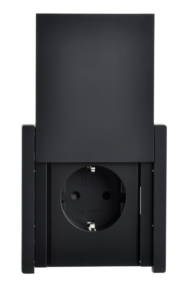 FORTE&PIANO Розетка 1-местная с заземлением с защитными шторками и крышкой безвинтовое крепление 16А IP44 FP119 черный IEK (IEK) FP-R16-16-1-44-K02