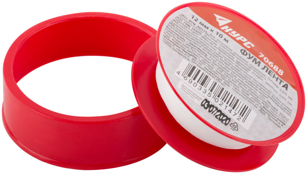 Полное описание товара ФУМ Лента, плотность 0,20 гр./см3, 12 мм X 10 м X 0,075 мм (КУРС) 70688