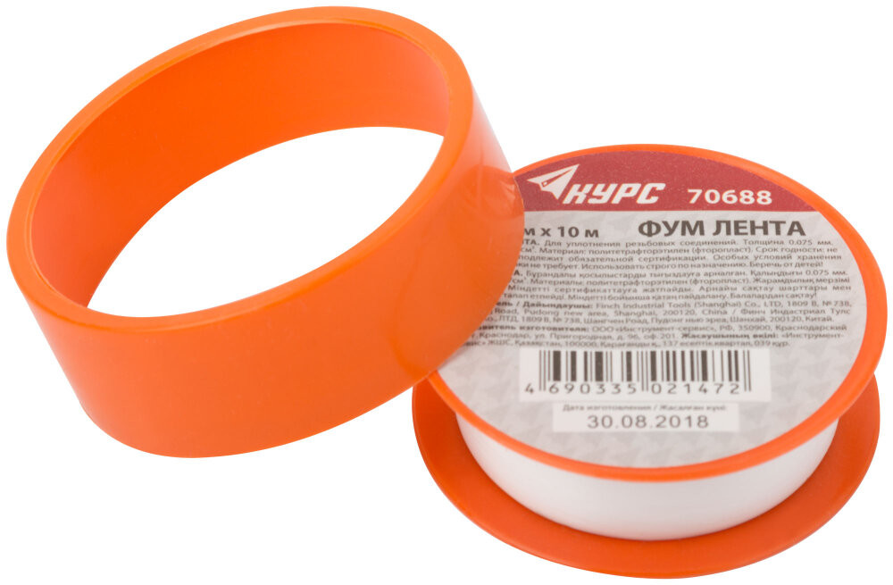 Фум-лента КУРС предназначена для уплотнения резьбовых соединений. Лента ее имеет запаха, обладает высокой эластичностью, плотно прилегает к поверхностям, образуя водонепроницаемую прослойку. Фум-лента устойчива к агрессивной среде, не вступает в химические реакции, выдерживает большое давление.