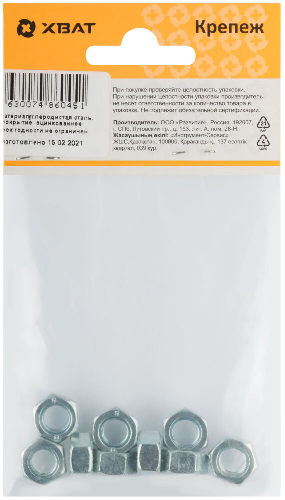 - Тип изделия: Гайка шестигранная