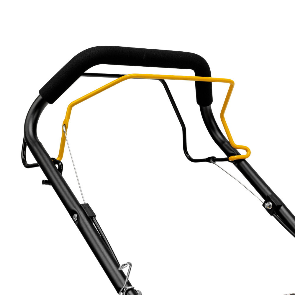 - Преимущества: Быстрый старт - насос подкачки топлива (праймер) позволяет легко запустить двигатель даже после долгого простоя|Комбинированный травосборник на 65 л - сочетание пластика и мягкой ткани делает его легким и простым в уходе, трава в нем не перегнивает|Контроль заполненности травосборника - флажок указывает, когда нужно опустошить контейнер|Защита двигателя от поломки - воздушный фильтр предотвращает попадание твердых частиц в цилиндр|Комфортная и безопасная работа - на рукоятке предусмотрено виброгасящее покрытие|Широкие колеса Eco-friendly - газонокосилка легко проходит по газону, не повреждая его|Простое обслуживание - функция быстрой очистки Quick clean значительно упрощает удаление травы и грязи|Легкая подготовка к хранению - быстрозажимные эксцентриковые фиксаторы позволяют быстро сложить рукоятку без использования инструмента