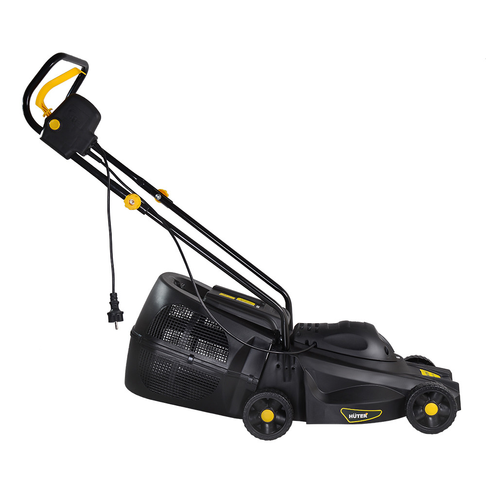 Электрогазонокосилка – устройство для стрижки небольших объемов газона, мягкой травы. Обладает рядом преимуществ- компактной конструкцией, простым обслуживанием, отсутствием вреда для окружающей среды. Газонокосилку можно использовать на неровных и труднодоступных участках, так как она оснащена маневренными колесами с высокой проходимостью. При этом у аппарата есть существенный недостаток - меньшая мощность, в сравнении с бензиновыми аналогами, и зависимость от электросети, поэтому её применение на больших участках затруднительно. Мощность электрического двигателя модели HUTER ELM-1100- 1100 Вт. Поддерживается высота среза 20-55 мм, ширина среза за проход составляет 320 мм. Электрогазонокосилка HUTER ELM-1100 оснащена пластиковым травосборником объемом на 35 литров. Большой объем контейнера позволяет делать меньше перерывов в работе.
