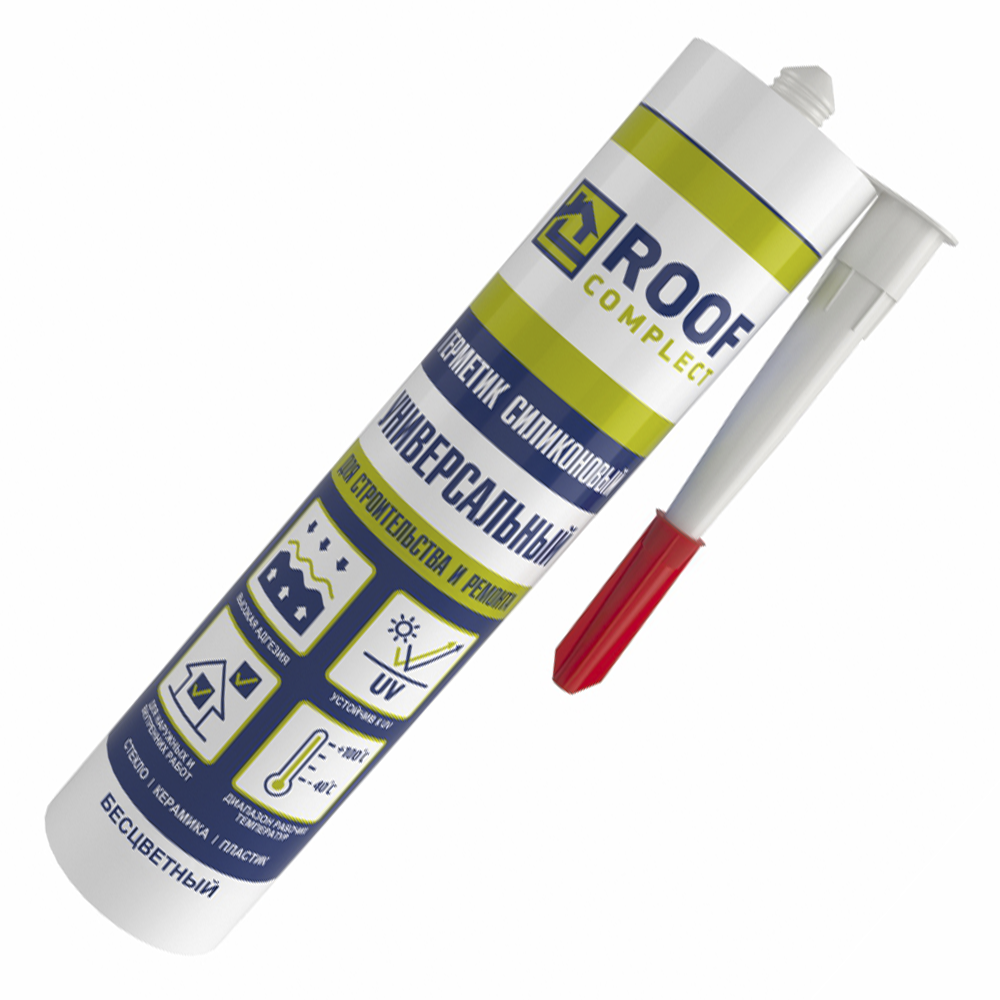 Полное описание товара Герметик силиконовый универсальный Roof Complect беcцветный (260мл) (Руфкомплект) 344826