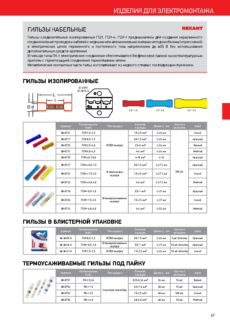 Полное описание товара Гильза кабельная изолированная ПК-т 1.5 красная (REXANT) 08-0752