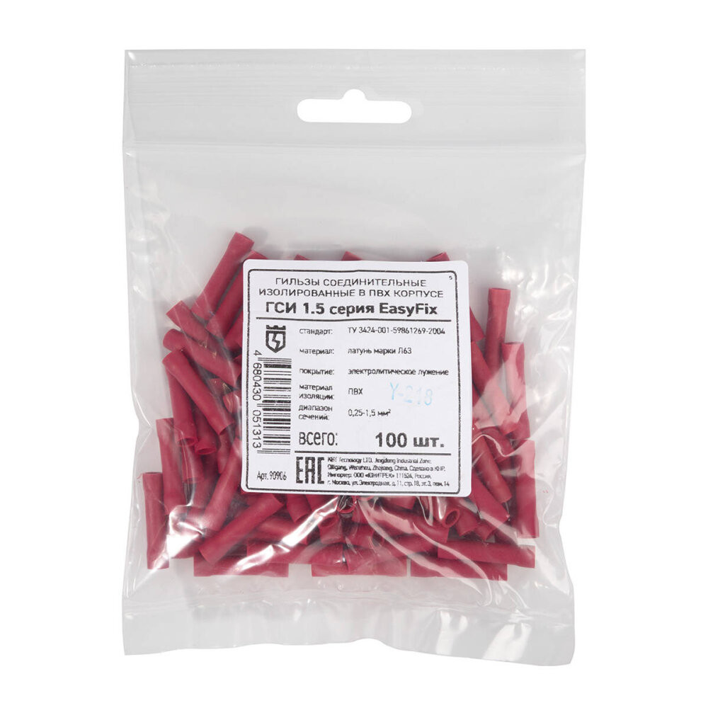 Полное описание товара Гильза соединительная изолированная ГСИ 1.5 серия EasyFix (100 шт) (КВТ) 90906