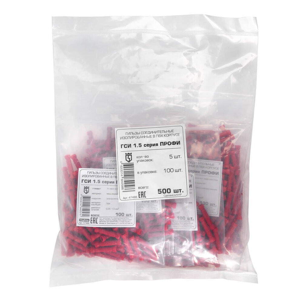 Полное описание товара Гильза соединительная изолированная ГСИ 1.5 серия ПРОФИ (500 шт) (КВТ) 47466