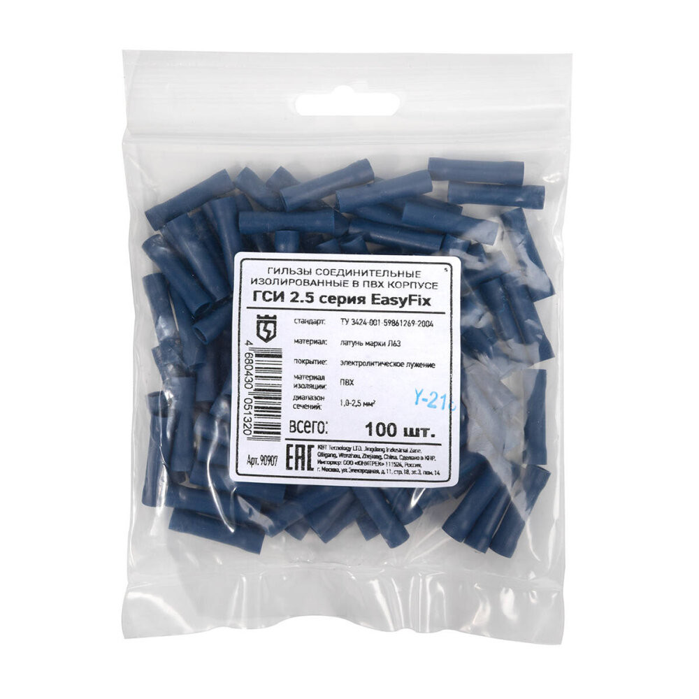 Полное описание товара Гильза соединительная изолированная ГСИ 2.5 серия EasyFix (100 шт) (КВТ) 90907