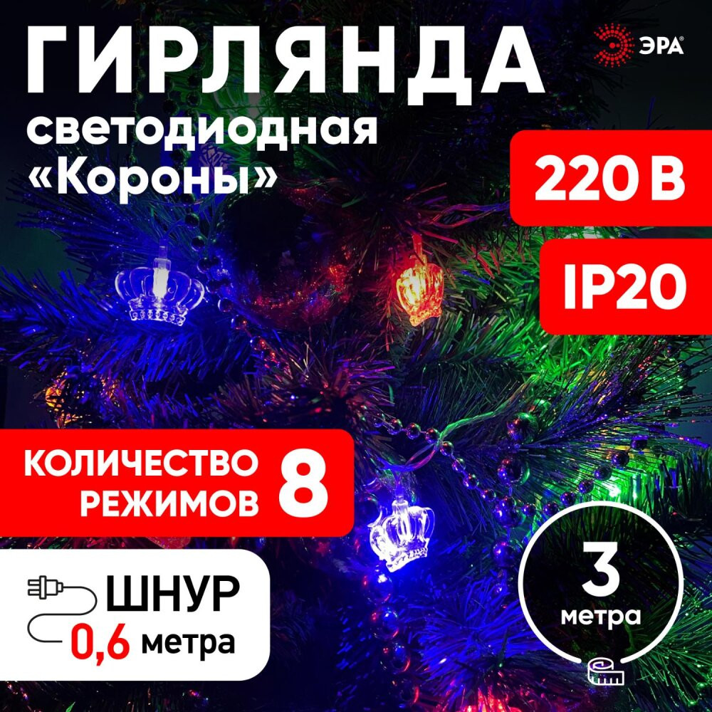 Гирлянда LED Нить Короны 3 м мультиколор, 220 V, IP20 36/864, ENIN-3K (ЭРА) Б0041898