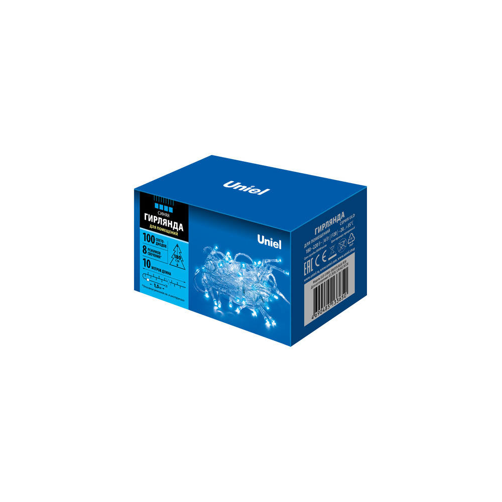 Полное описание товара Гирлянда светодиодная 10м 100 светодиодов Синий свет Провод прозрачный ULD-S1000-100/DTA BLUE IP20 (Uniel) UL-00007197