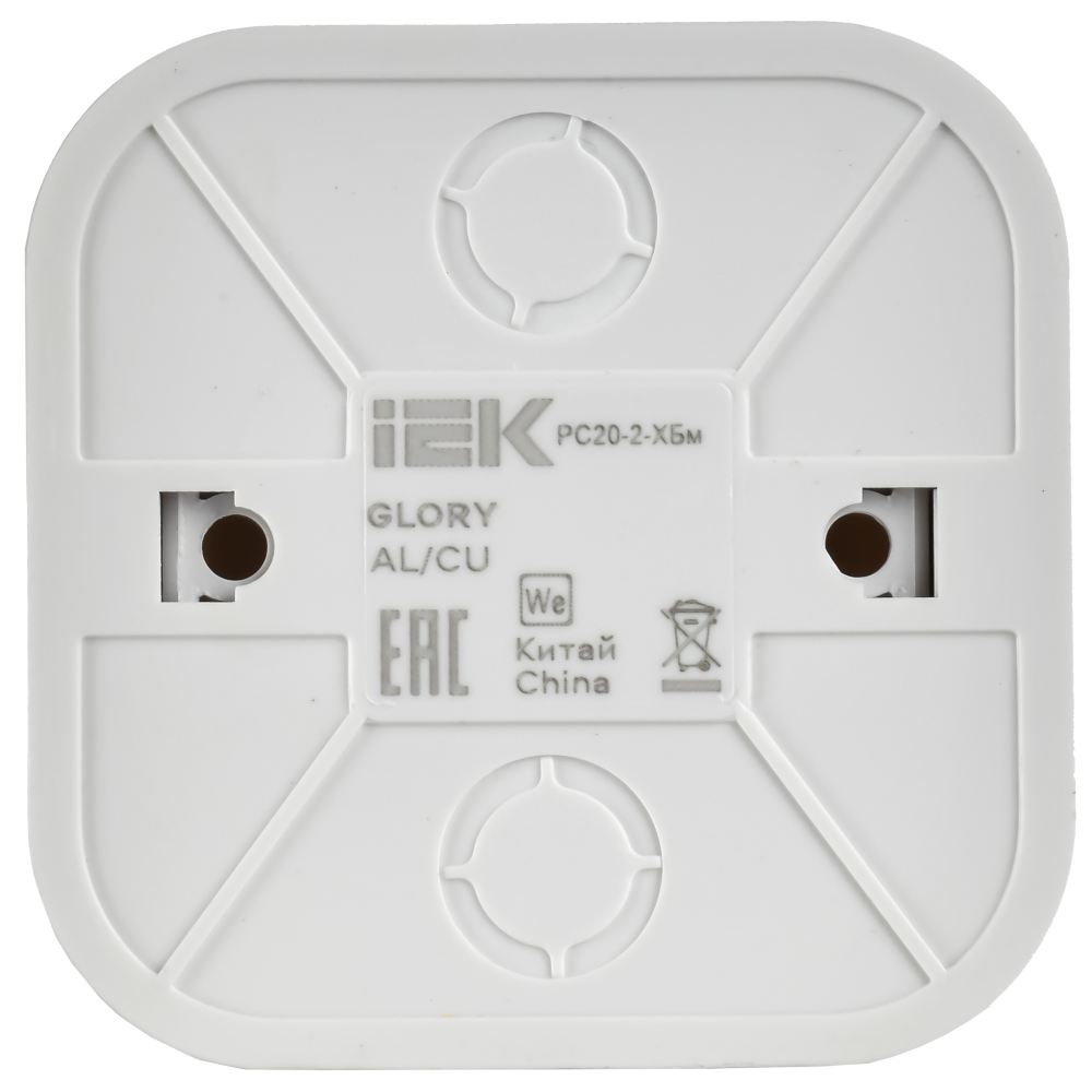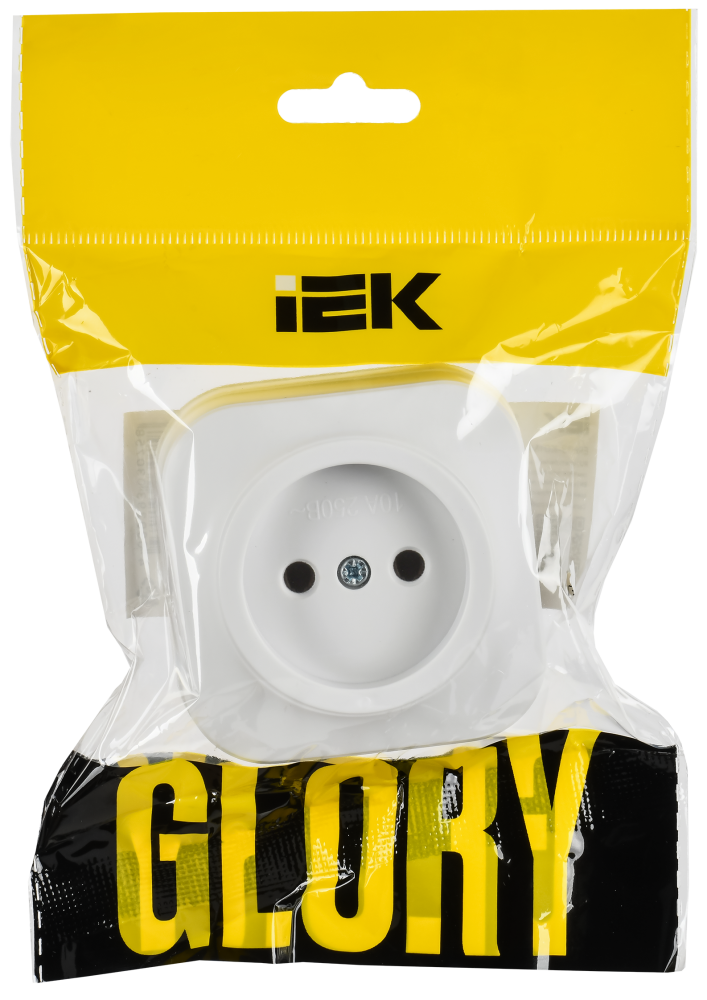 Полное описание товара GLORY Розетка 1-местная для открытой установки без заземления без защитных шторок 10А РС20-2-ХБм белый матовый IEK (IEK) ERH10-K01M-10