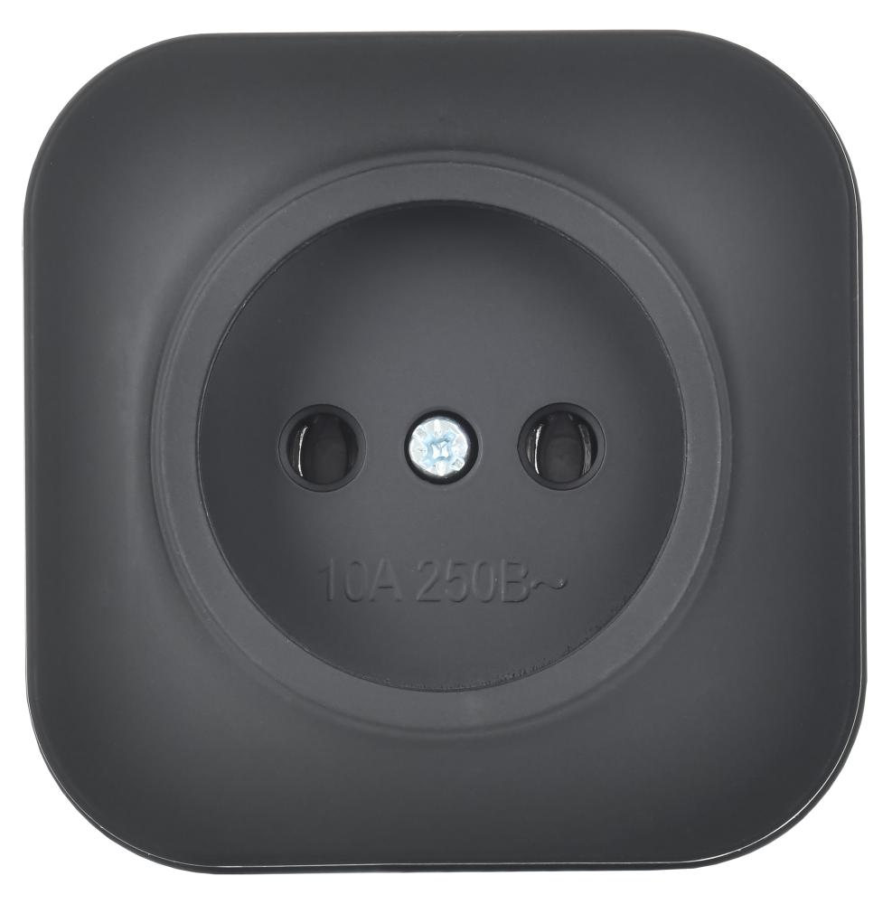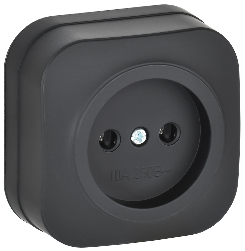 GLORY Розетка 1-местная для открытой установки без заземления без защитных шторок 10А РС20-2-ХЧм черный матовый IEK (IEK) ERH10-K02M-10