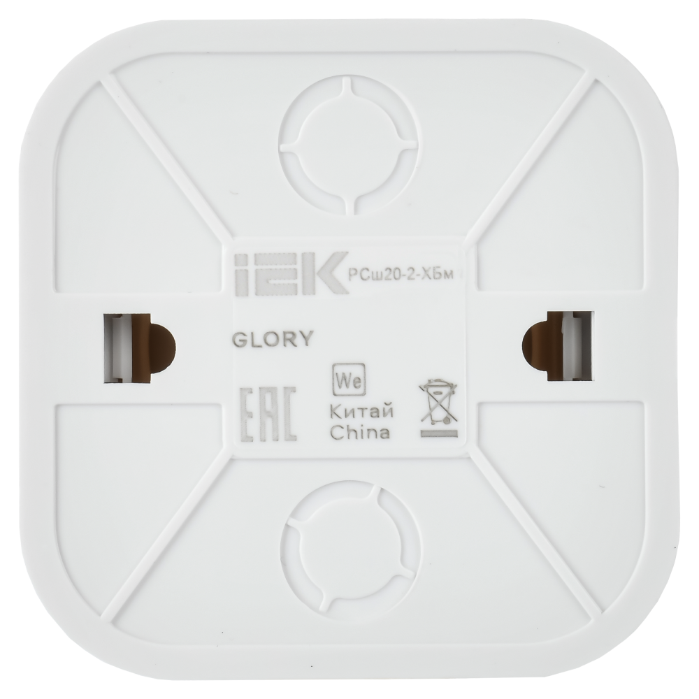 Полное описание товара GLORY Розетка 1-местная для открытой установки без заземления с защитными шторками 10А РСш20-2-ХБм белый матовый IEK (IEK) ERH13-K01M-10