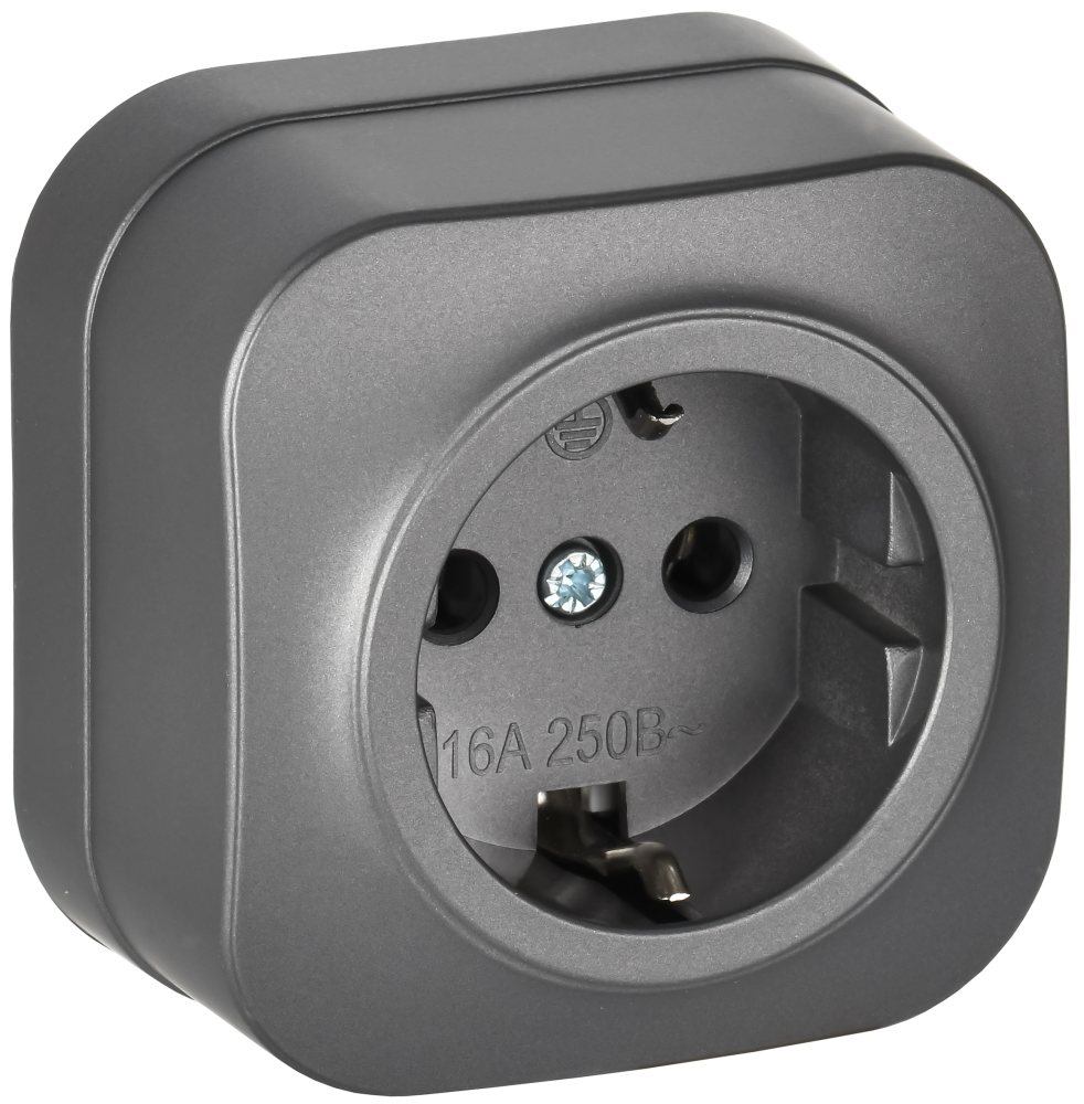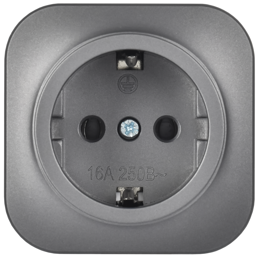 GLORY Розетка 1-местная для открытой установки с заземлением без защитных шторок 16А РС20-3-ХСм сталь матовый IEK (IEK) ERH11-K46M-16