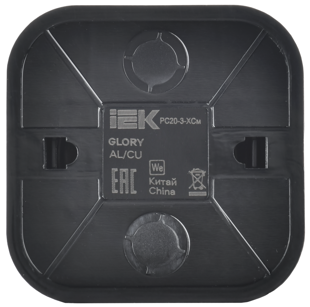 Полное описание товара GLORY Розетка 1-местная для открытой установки с заземлением без защитных шторок 16А РС20-3-ХСм сталь матовый IEK (IEK) ERH11-K46M-16