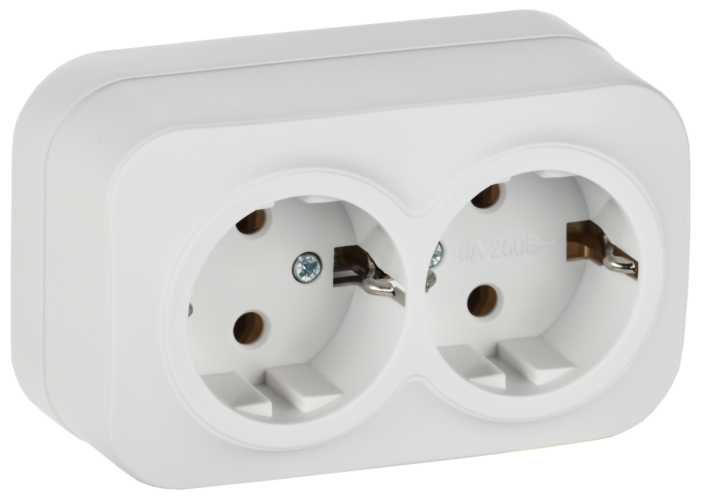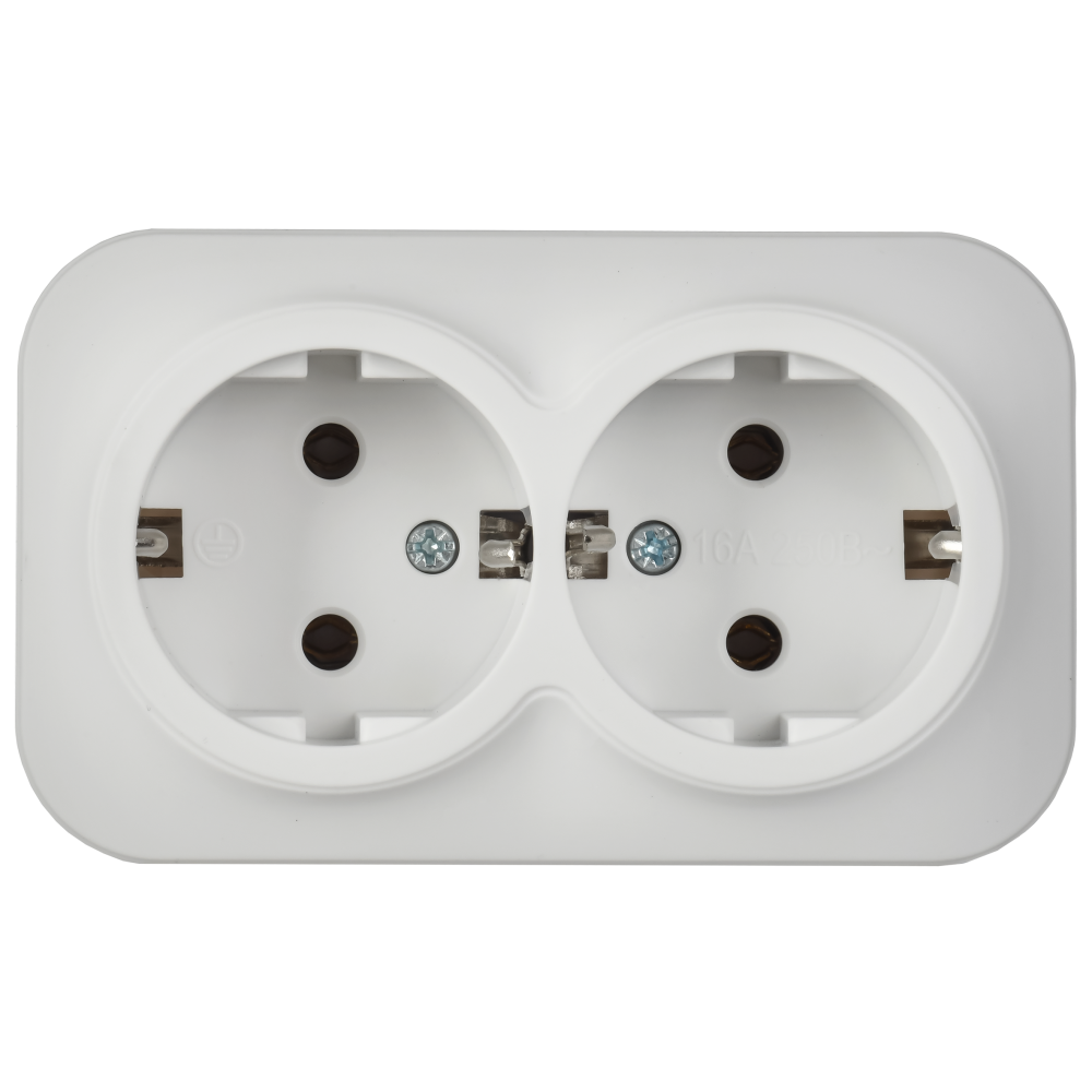 GLORY Розетка 2-местная для открытой установки с заземлением без защитных шторок 16А РС22-3-ХБм белый матовый IEK (IEK) ERH21-K01M-16