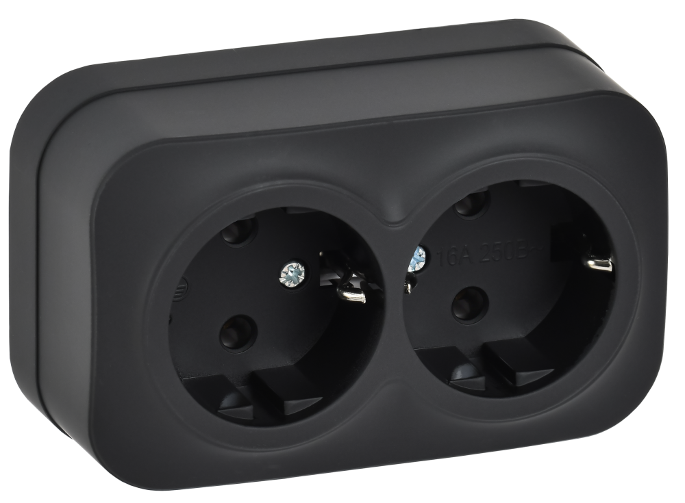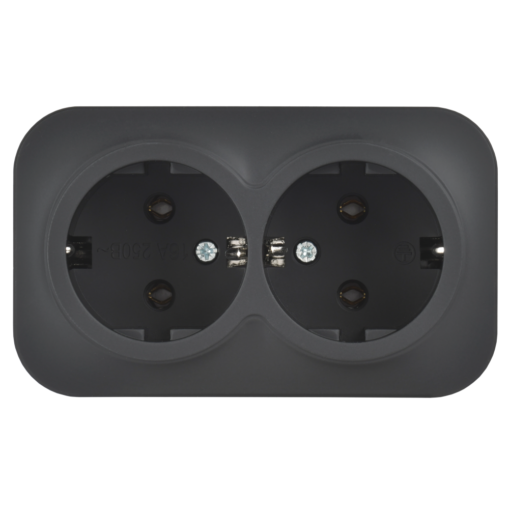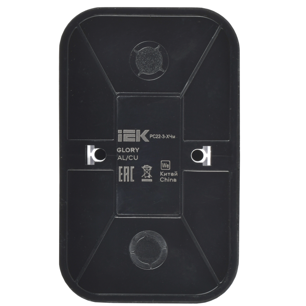 GLORY Розетка 2-местная для открытой установки с заземлением без защитных шторок 16А РС22-3-ХЧм черный матовый IEK (IEK) ERH21-K02M-16