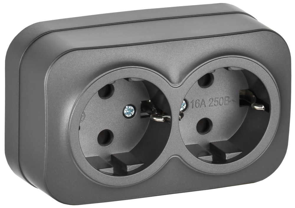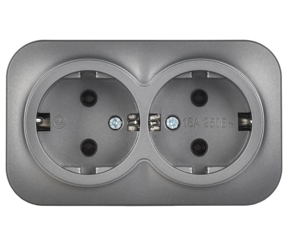 GLORY Розетка 2-местная для открытой установки с заземлением без защитных шторок 16А РС22-3-ХСм сталь матовый IEK (IEK) ERH21-K46M-16