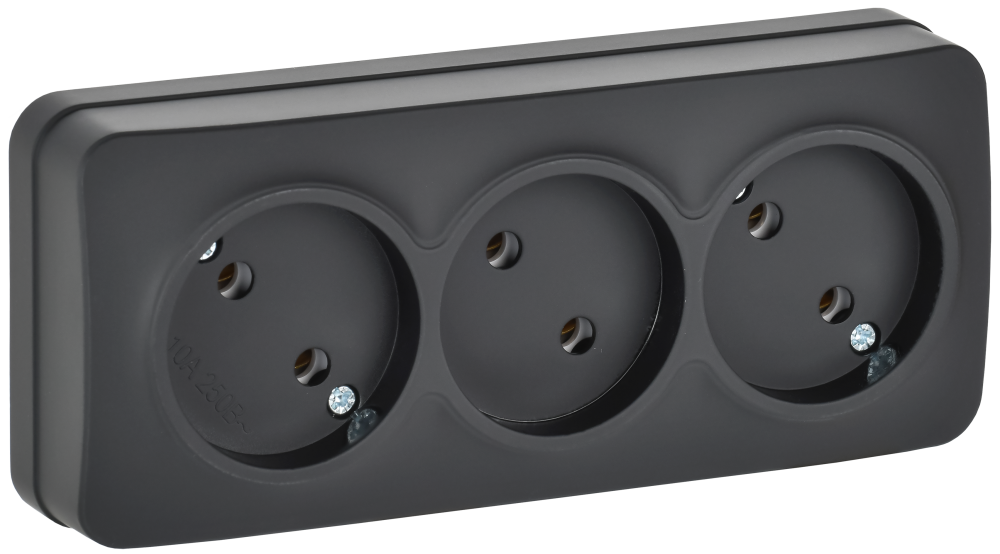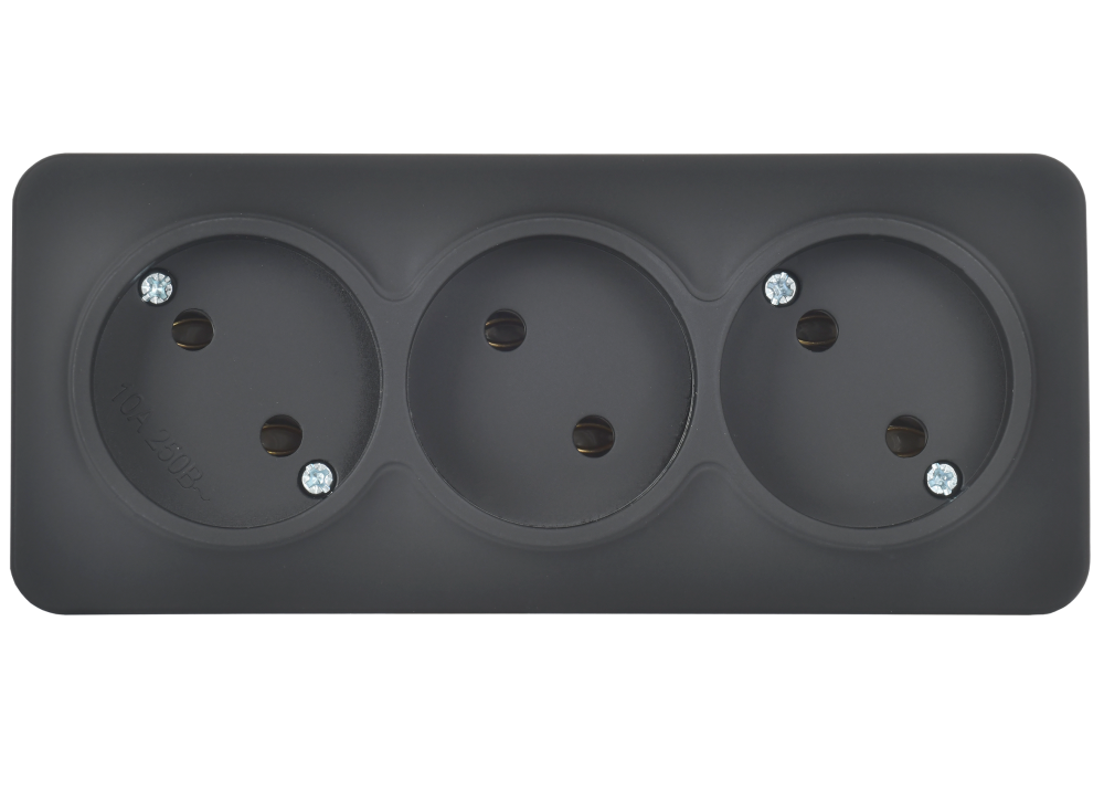 GLORY Розетка 3-местная для открытой установки без заземления без защитных шторок 10А РС23-2-ХЧм черный матовый IEK (IEK) ERH30-K02M-10