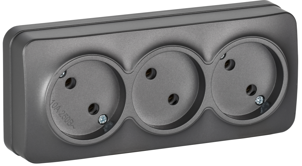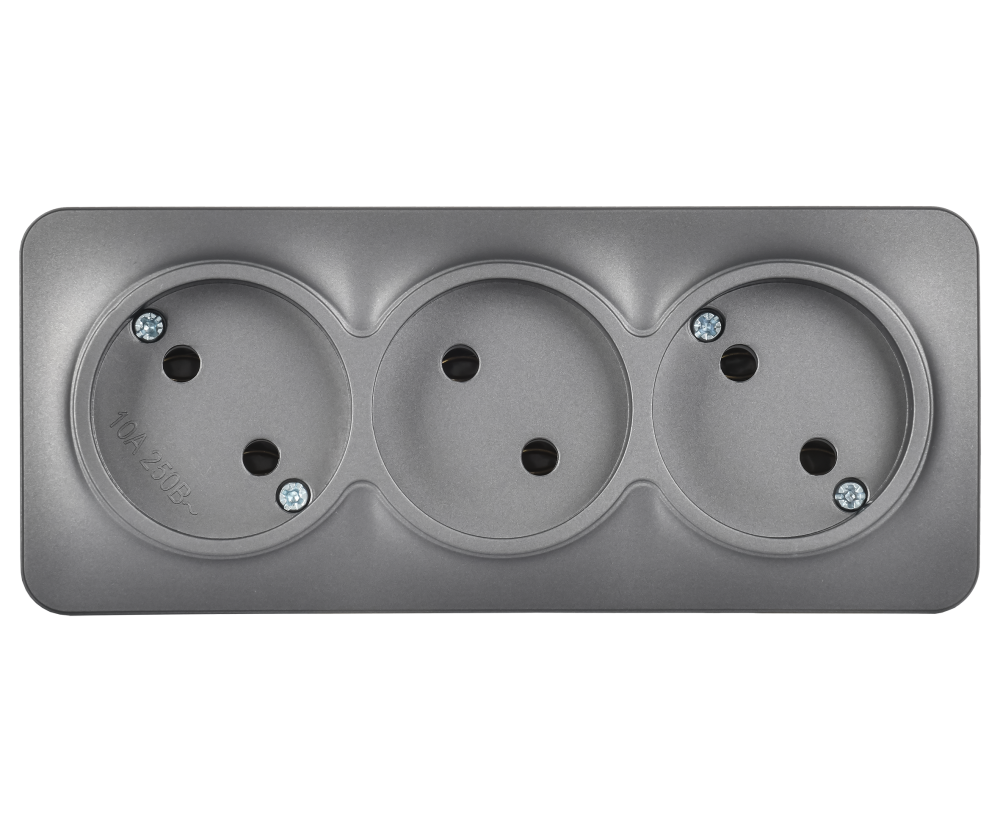 GLORY Розетка 3-местная для открытой установки без заземления без защитных шторок 10А РС23-2-ХСм сталь матовый IEK (IEK) ERH30-K46M-10