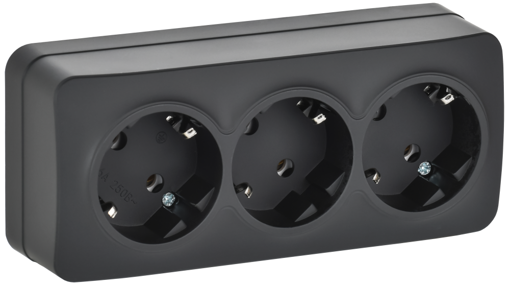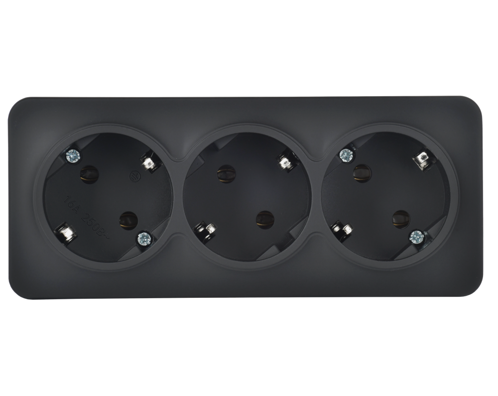 GLORY Розетка 3-местная для открытой установки с заземлением без защитных шторок 16А РС23-3-ХЧм черный матовый IEK (IEK) ERH31-K02M-16