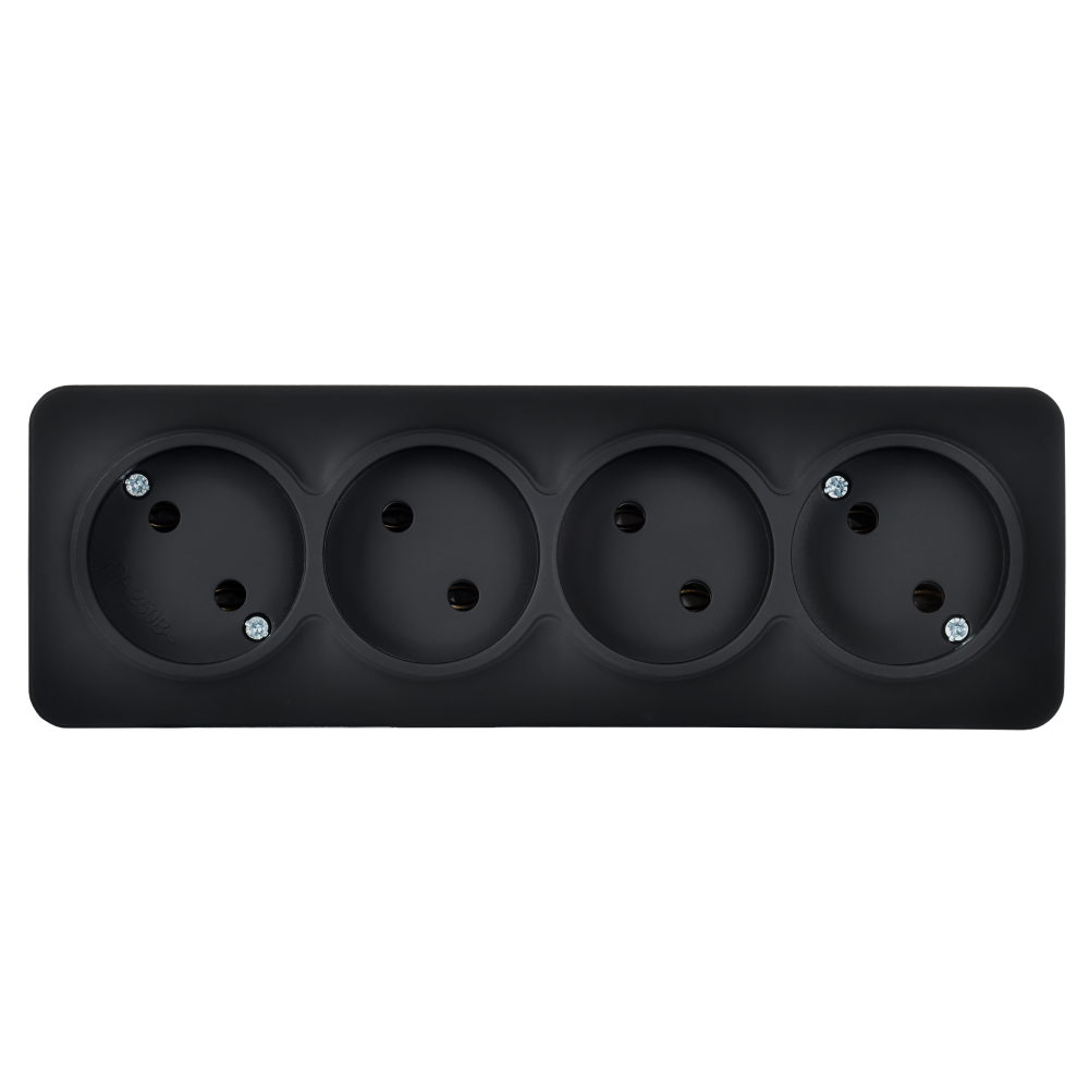 GLORY Розетка 4-местная для открытой установки без заземления без защитных шторок 10А РС24-2-ХЧм черный матовый IEK (IEK) ERH40-K02M-10