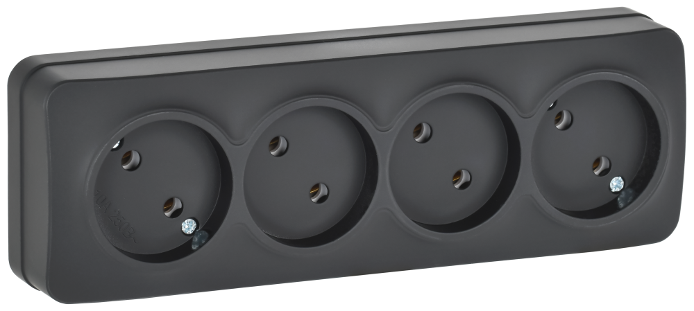 Полное описание товара GLORY Розетка 4-местная для открытой установки без заземления без защитных шторок 10А РС24-2-ХЧм черный матовый IEK (IEK) ERH40-K02M-10