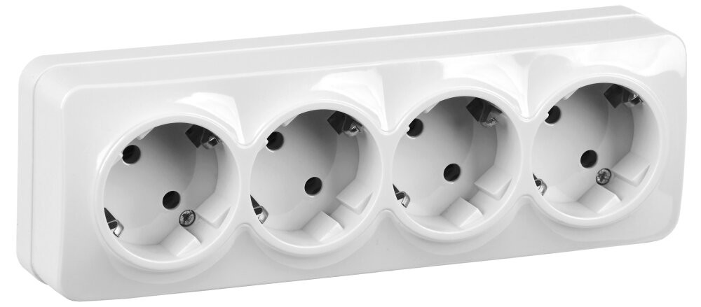 Полное описание товара GLORY Розетка четырехместная наружная с заземлением белая (IEK) ERH41-K01-16