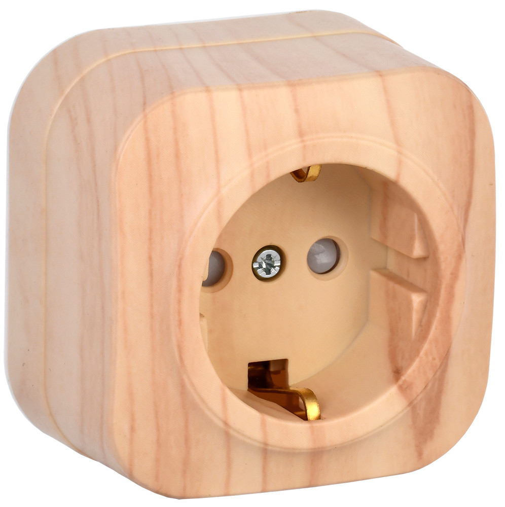 GLORY Розетка одноместная наружная с заземлением с защитной шторкой сосна (IEK) ERH14-K34-16
