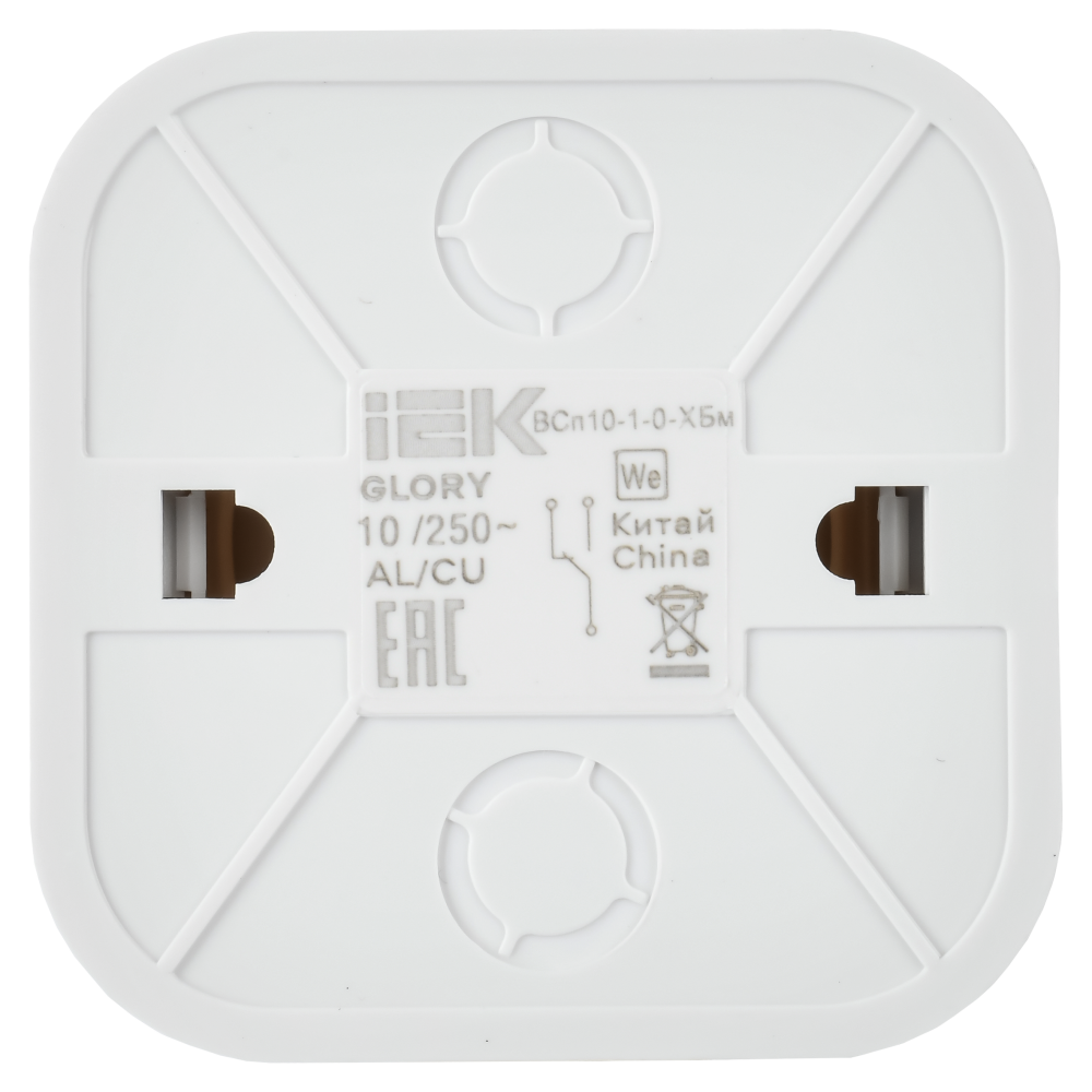 Полное описание товара GLORY Выключатель 1-клавишный для открытой установки проходной 10А ВСп10-1-0-ХБм белый матовый IEK (IEK) EVH12-K01M-10