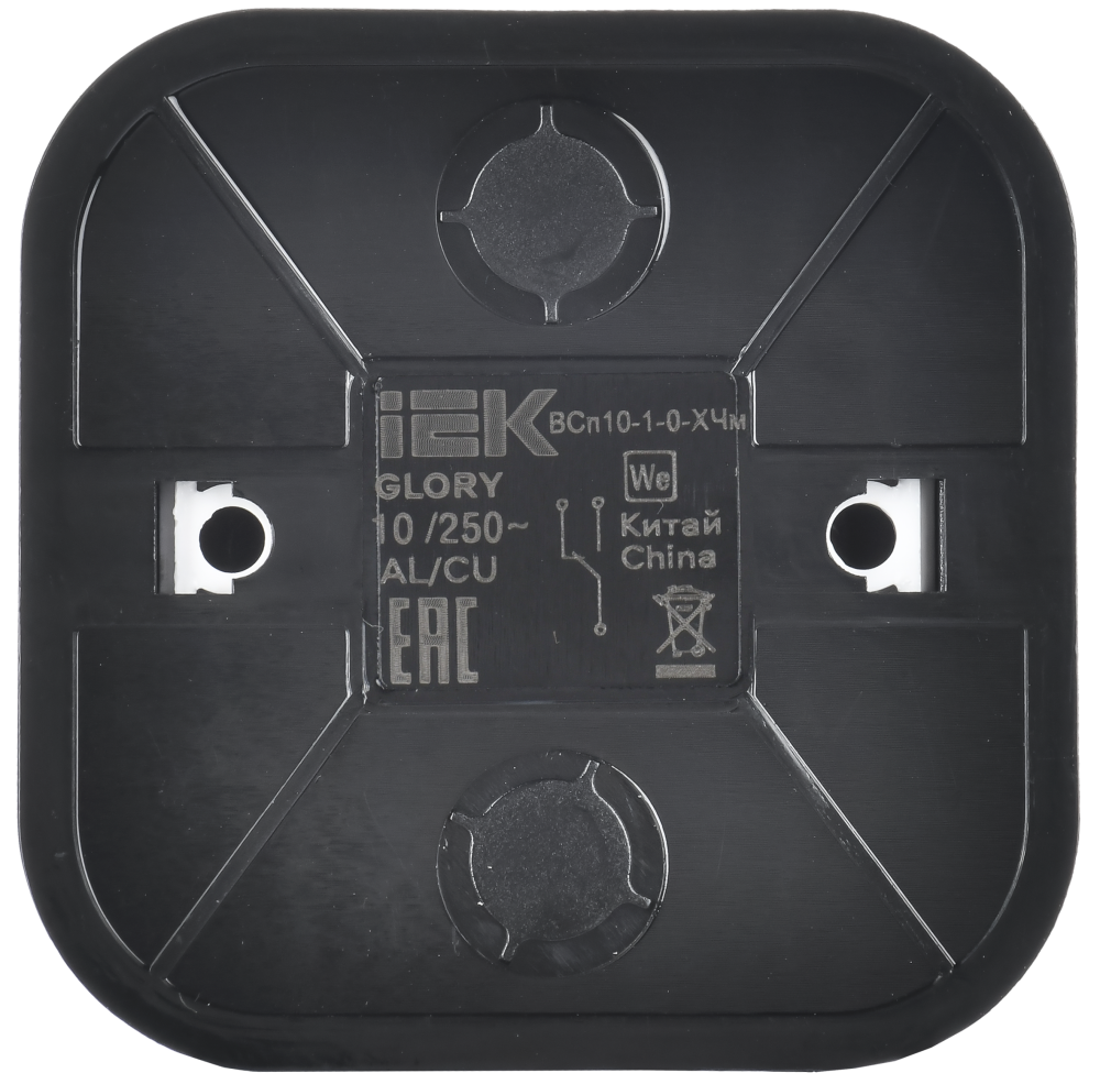 Полное описание товара GLORY Выключатель 1-клавишный для открытой установки проходной 10А ВСп10-1-0-ХЧм черный матовый IEK (IEK) EVH12-K02M-10