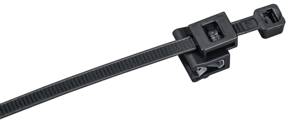 - Преимущества: Материал - полиамид 6.6UV (устойчивость к УФ-излучению). |Температура эксплуатации: от -40°C до +85°C. |Возможность перемещения крепления после монтажа. |Не содержит галогенов. |Надежная фиксация замка. |Стойкость к многократному изгибу.