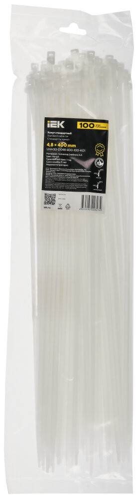 Хомут P6.6 стандартный белый 4.8х400мм 100шт/упак IEK (IEK) UHH30-D048-400-100-K01
