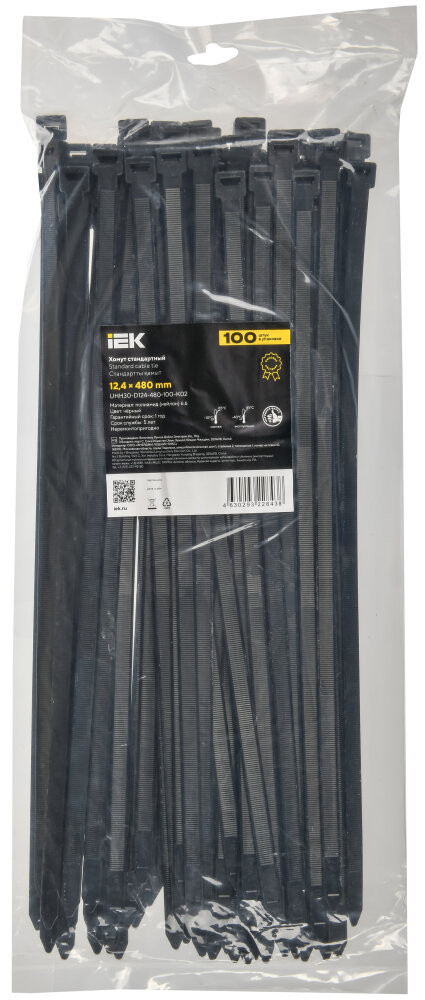 Полное описание товара Хомут P6.6 стандартный черный 12.4х480мм 100шт/упак IEK (IEK) UHH30-D124-480-100-K02