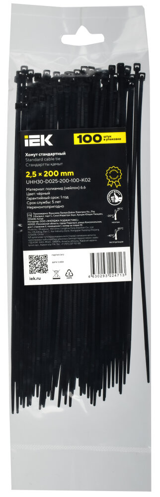 Хомут P6.6 стандартный черный 2.5х200мм 100шт/упак IEK (IEK) UHH30-D025-200-100-K02